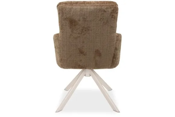 Eetkamerstoel Jari van het merk Veyron brengt warmte en comfort samen in een uitnodigend ontwerp. De volle zitting en afgeronde armleuningen zorgen voor een prettige en ontspannen uitstraling. Deze stoel is snel leverbaar en hier uitgevoerd in de stof Cremona Taupe 18 met metalen poten in de kleur beige.