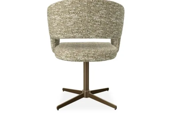 De eetkamerstoel (zoals afgebeeld) wordt standaard geleverd met een zwarte ster poot. De stoel heeft een draaipoot met een 360 graden terugdraaisysteem, door het terugdraaisysteem kun je de zitting van de stoel draaien en daarna zal deze uit zichzelf weer terugdraaien naar het midden.