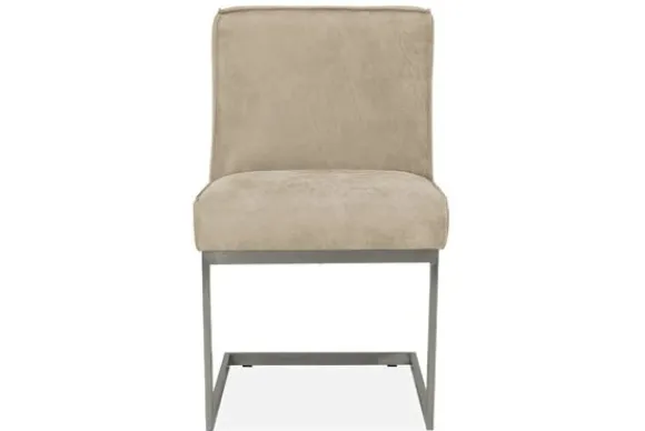 Eetkamerstoel Fun van het merk Divani is een verfijnde mix van comfort en strak design. De zachte beige bekleding voelt luxueus aan en geeft een tijdloos en elegant karakter aan je interieur.
