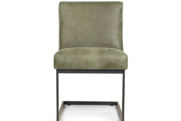 Eetkamerstoel Fun van het merk Divani is een verfijnde mix van comfort en strak design. De natuurlijke groene bekleding voelt luxueus aan en geeft een tijdloos en elegant karakter aan je interieur.