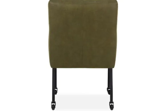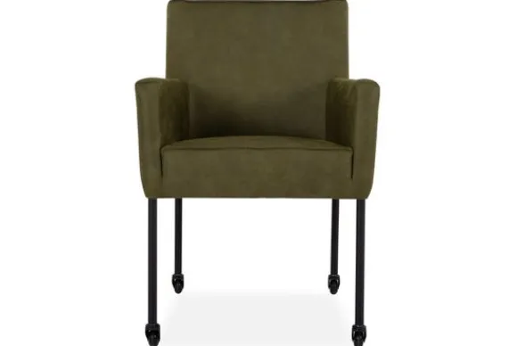 Deze stoel wordt standaard geleverd met rechte, metalen pootjes met wielen en een dichte naad. Er kan gekozen worden voor andere poten of een dichte naad onder “Kies je extra’s”.