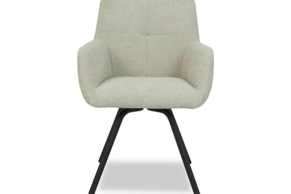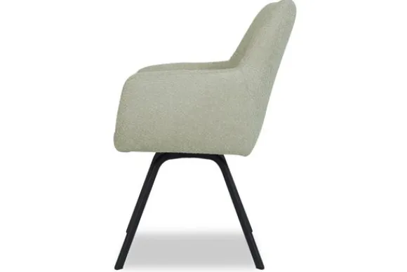 De eetkamerstoel wordt standaard geleverd met mat zwarte, gebogen, stalen poten, onder de tab “Kies je extra’s” kan je kiezen voor alternatieve stoelpoten.
