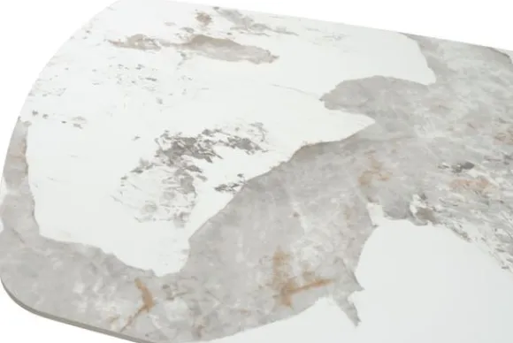 Eettafel Castello van het merk Tower Living is een luxe statement piece met een deens ovale marmerlook blad en een sculpturaal metalen onderstel in warme bronskleur. Deze combinatie van hoogwaardige materialen en unieke vormgeving maakt de tafel een stijlvolle blikvanger in elke eetkamer.