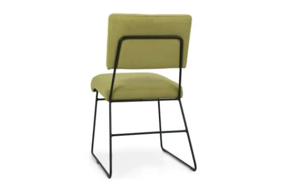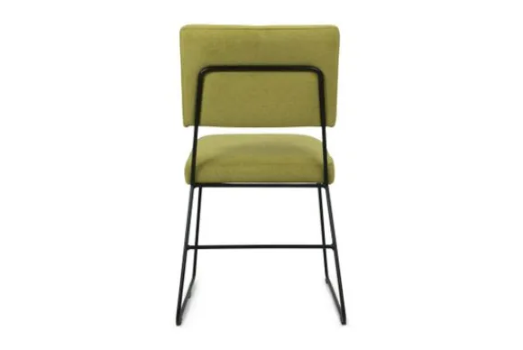Eetkamerstoel Febe van het merk Donc is beschikbaar in alle kleuren en in materiaalsoorten zoals stof, kunstleder en rundleder. De Febe is een minimalistisch ogende stoel door het smalle metalen frame. In de rugleuning vind je een blokstikstel. Deze uitvoering heeft geen armleuning, maar de Febe is ook beschikbaar met armleuning.