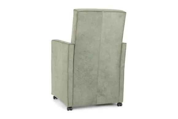 Deze stoel wordt standaard uitgevoerd met parketwieltjes, een gladde rug en zonder handgreep.