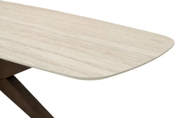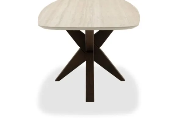 Eettafel Santa Cruz van het merk Every Table BV heeft een Deens ovaal HPL blad van 2,8 centimeter dik. De standaard tapse rand zorgt voor een nette afwerking die mooi aansluit op het stevige houten onderstel.
