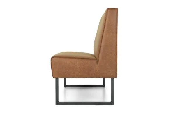Deze eetkamerbank komt met een open naad, metalen sladepoot, gladde rugleuning en dichte voor- en achterkant. Deze eetbank wordt geleverd met een extra steunpoot in het midden vanaf een breedte van 220 cm tot 250 cm, vanaf 250 cm komt er een extra sledepoot in het midden.