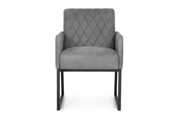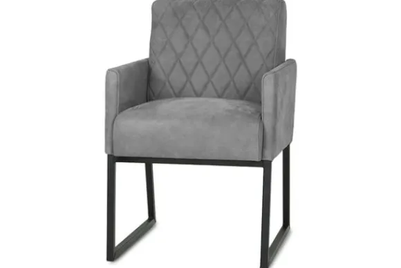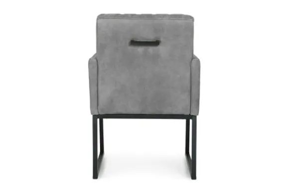 Eetkamerstoel Bullock van het merk Donc is beschikbaar in alle kleuren en in diverse materiaalsoorten zoals stof, kunstleder en rundleder. Deze eetkamerstoel is voorzien van zwart metalen poten, wieberstiksels in de rugleuning en heeft armleuningen. De Bullock is ook beschikbaar met andere stiksels in de rug en zonder armleuningen. Deze stoel heeft een simpel, elegant design. Er zit een handgreep op de achterkant van de rugleuning, maar deze kun je ook weglaten.