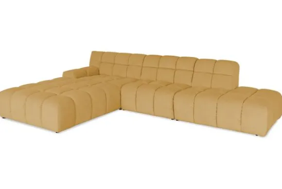 Je kunt kiezen uit verschillende materialen, waaronder stoffen als velvet en boucle. Daarnaast is de bank verkrijgbaar in uiteenlopende kleuren.