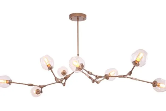 Plafondlamp Cas 8-lichts Brons van het merk Toms Luxury Lights is een moderne plafondlamp. Door het messing in combinatie met het glas krijgt de lamp een luxe uitstraling. De lichtbronnen zijn verstelbaar naar wens. Hierdoor kan je zorgen dat het licht precies schijnt waar jij wilt. Het glas zorgt voor een bijzondere lichtinval dat de ruimte laat stralen. Voor het mooiste effect kun je het beste een spiraal lichtbron in de lamp plaatsen. De lamp is voorzien van E27 (grote) fittingen. De plafondlamp is dimbaar middels een externe dimmer en een dimbare lichtbron. De lamp wordt inclusief lichtbron geleverd.