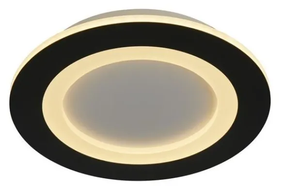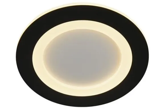 Plafondlamp Ringo 44712BK van het merk Searchlight is een moderne en functionele lamp met een strak, rond design. De zwarte rand in combinatie met het geïntegreerde LED-licht zorgt voor een stijlvol contrast en een egale lichtverdeling. Dankzij de subtiele vormgeving past deze lamp perfect in een modern of industrieel interieur.