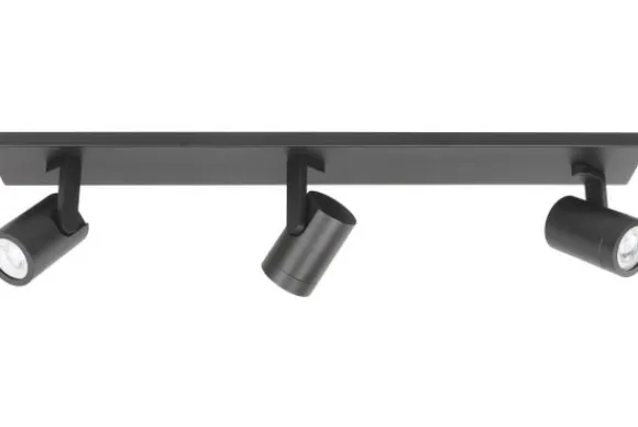Deze plafondlamp is verkrijgbaar in drie kleuren en is ook te verkrijgen met meer of minder spotjes.