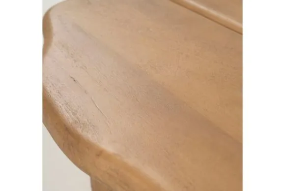 Het mangohout toont een levendig nerfpatroon dat elk exemplaar uniek maakt. Combineer hem met zachte stoffen of neutrale tinten voor een harmonieuze sfeer.