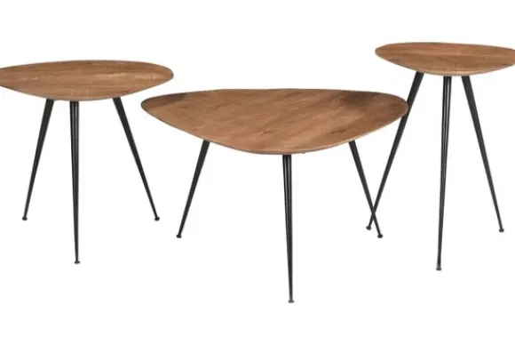 Salontafel Loua Natural van het merk Livingfurn bestaat uit drie tafeltjes met verschillende afmetingen. De tafels zijn gemaakt van mangohout. Mangohout is een duurzaam houtsoort, heeft een fijne nerf en is uniek, omdat de nerven er bij elke tafel anders uitzien. De tafelpoten zijn gemaakt van zwart gecoat staal. Deze tafelset is in verschillende houtkleuren verkrijgbaar. De afmetingen van de tafels zijn: H40xB70xD70 cm, H45xB50xD50 cm en H53xB40xD40 cm.