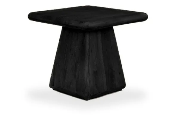Salontafel Asti van het merk Tower Living is een stoer en stijlvol meubelstuk met een geometrische twist. Het vierkante blad in diepzwart mangohout rust op een stevig gevormde poot die taps uitloopt naar beneden, wat zorgt voor een krachtig silhouet met een uitgesproken karakter. De rijke houtstructuur blijft zichtbaar en voegt een natuurlijke diepte toe aan het geheel.
