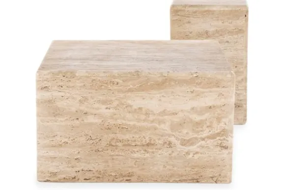 Het kleine blok is B30 x D30 x H47 cm en de grote salontafel is B60 x D60 x H35 cm. De tafels zijn ook afzonderlijk verkrijgbaar.