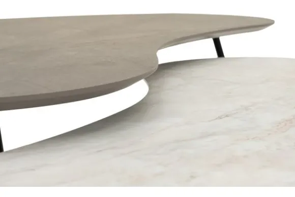 Salontafelset Solveta van het merk Casa Varello bestaat uit twee salontafels met de volgende afmetingen: B100 x D55 x H31 cm en B120 x D63 x H36 cm.