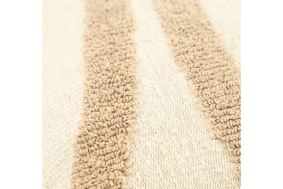 Het speelse hoog-laag patroon in warme taupe- en crèmetinten geeft het kussen een subtiel, modern reliëfeffect. De ton-sur-ton geborduurde lijnen creëren een organische, dynamische uitstraling die perfect past in een Scandinavisch, bohemian of Japandi interieur. Het binnenkussen, gemaakt van 100% katoen, zorgt voor ademend comfort en een natuurlijke ondersteuning.