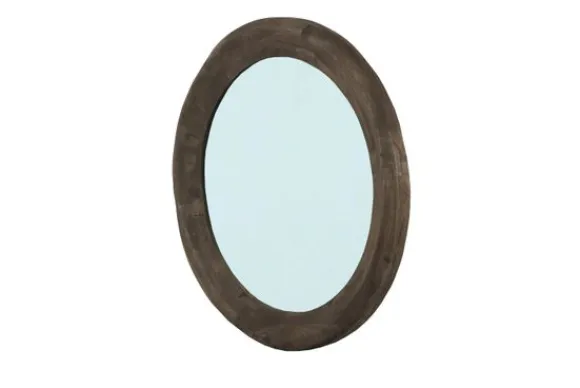 Spiegel Noam is een elegante wandspiegel met een donkerbruine lijst van mangohout.