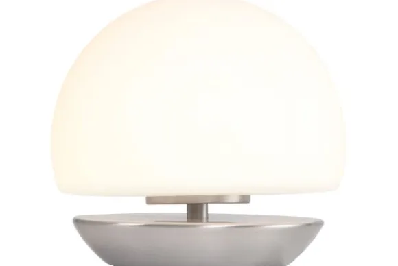 Door de touch dimmer en het compacte formaat is tafellamp Ancilla ideaal als bedlamp. Het spel tussen wit glas en de zilverkleurige voet voegt een modern en elegant accent toe aan uw interieur.