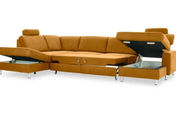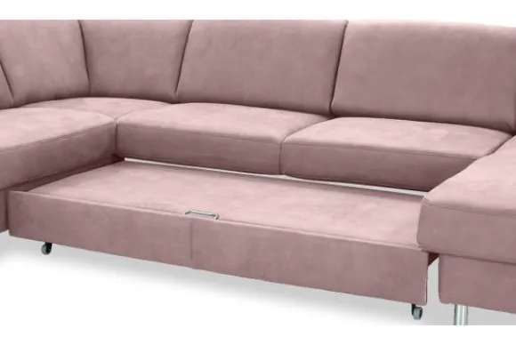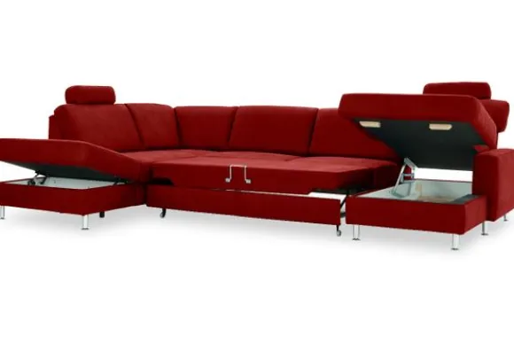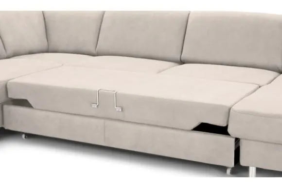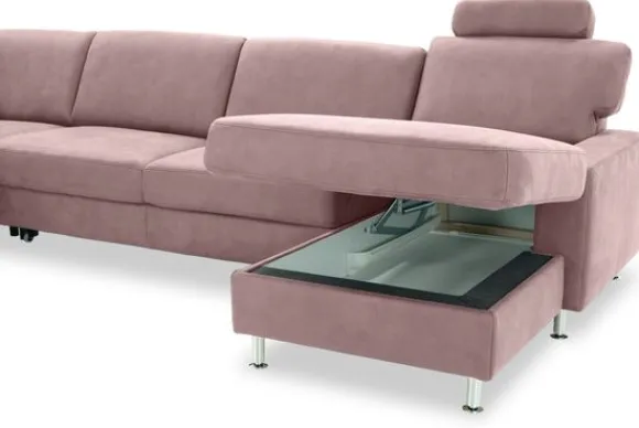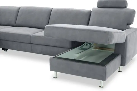 De Bayonne is uniek door de vele opties waarover deze bank beschikt. Zo kan er niet alleen gekozen worden voor sierkussens en armleuning kussens, er kan ook gekozen worden voor hoofdsteunen. Een elektrisch relaxsysteem in de longchair is ook mogelijk. In de twee middelste zittingen kan een slaapfunctie of uitschuifbare zitting ingebouwd worden, deze zijn eenvoudig uit te klappen. Zo onstaat er binnen no time een bed! Om dit bankstel nog handiger te maken kan er ook gekozen worden voor een opklapbare lounge. Als je deze opklapt zit er een super handig opbergvak onder! Deze bank komt standaard met rond aluminium poten, je kunt ook voor andere poten kiezen.