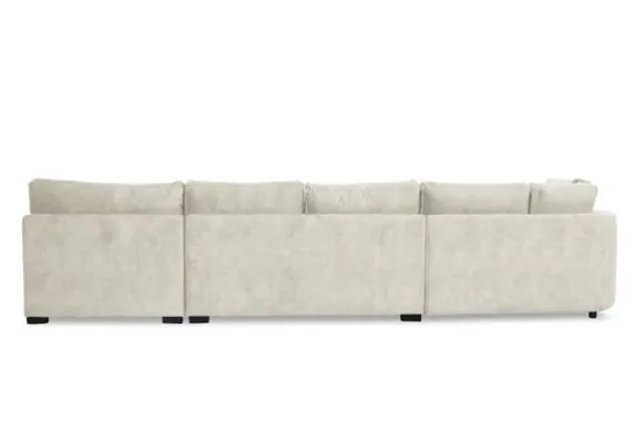 Naast comfort en design biedt de Frederique slimme functionaliteiten voor de ultieme relax ervaring. De 2-zitselementen kunnen worden uitgerust met een slaap-/Netflixfunctie, waardoor de bank in een handomdraai transformeert tot een royale loungeplek of extra slaapplek. Optionele extra opbergruimte is te vinden in het longchair element, waarbij de zitting omhoog geklapt kan worden om dekens, kussens of andere accessoires netjes op te bergen. Ook kan je kiezen voor rechte rugkussens voor een moderne, strakke look of T-vormige kussens die sierlijk over de armleuning vallen en de bank een nonchalante, uitnodigende uitstraling geven.