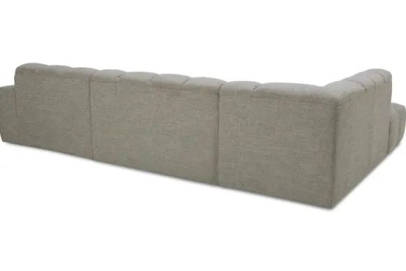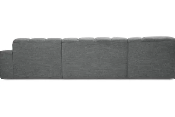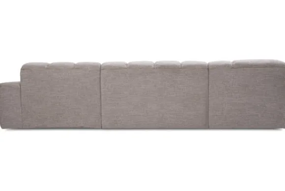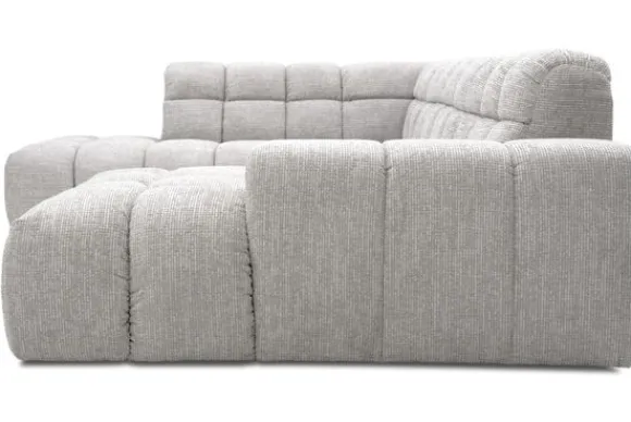 Bankstel Treviso van het merk Moderno is een bank met geblokte zit- en rugkussens en een zitting die doorloopt tot net boven de grond.