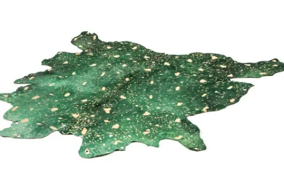 Vloerkleed Fly 110 Groen van het merk Divendo is verkrijgbaar in verschillende afmetingen en kleuren. Dit natuurlijke vloerkleed is gemaakt van echt rundleer en krijgt zijn bijzondere karakter door de moderne kleurstelling, elegante metallic accenten en de natuurlijke contouren. Stijlvolle uitsparingen die variëren in vorm en maat geven het kleed een unieke uitstraling. Eenvoudige, minimalistische ruimtes kunnen met dit vloerkleed bijzonder worden geaccentueerd. Door het lichte gewicht van de vlakke pool kan het model niet alleen als vloerbedekking worden gebruikt, maar ook als wandkleed of stoelbekleding. Zo kan je jouw woning geheel naar eigen inzicht inrichten en flexibel variëren in het gebruik van het tapijt.