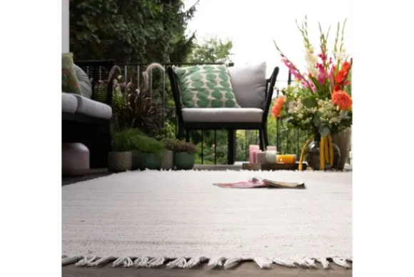 Vloerkleed Nador 565 Ivory van het merk Viviendo is verkrijgbaar in verschillende afmetingen en kleuren. Daarnaast is dit rechthoekige kleed zowel binnen als buiten te gebruiken. Het vloerkleed heeft een hoogte van 1.5 cm en is gemaakt van een mix van gerecycled katoen en polyester. Gerecycled katoen wordt door diverse onderzoeken onderschreven als de meest duurzame vorm van katoen. Het heeft een hoge duurzaamheid en langdurige kleurintensiteit. Polyester in het vloerkleed is een synthetische stof die ervoor zorgt dat het tapijt stevig is, niet pluist en gemakkelijk te onderhouden is.