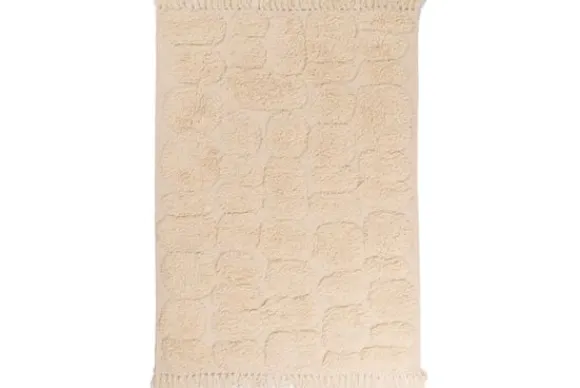 Het kleed is gemaakt van wol, een materiaal dat bekendstaat om zijn vuilafstotende en isolerende eigenschappen. Het voelt warm aan, dempt geluid en blijft lang mooi, ook bij dagelijks gebruik.
