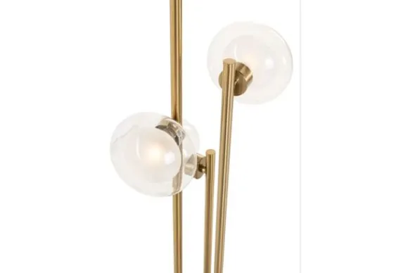 Vloerlamp Luva 213046 van het merk Richmond Interiors is modern, stijlvol en een echte eye-catcher. De vloerlamp heeft een ijzeren, geborsteld gouden basis met zes sierlijke verschillende glazen lampenkappen. Met zijn hoogte van 140 centimeter en voet met een diameter van 33 centimeter, past de lamp met gemak in een zithoek of tussen alle meubels. De vloerlamp is inclusief zes G9 lichtbronnen.