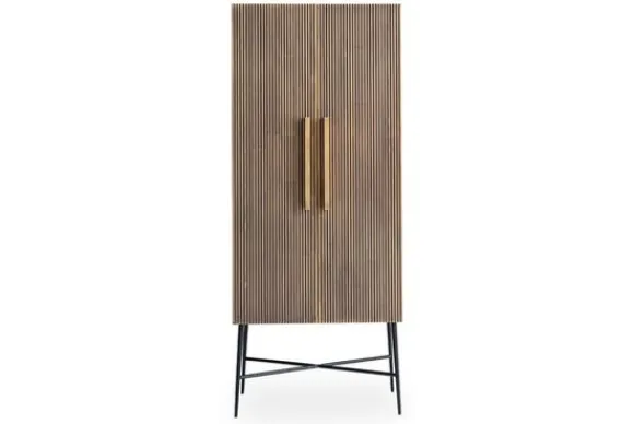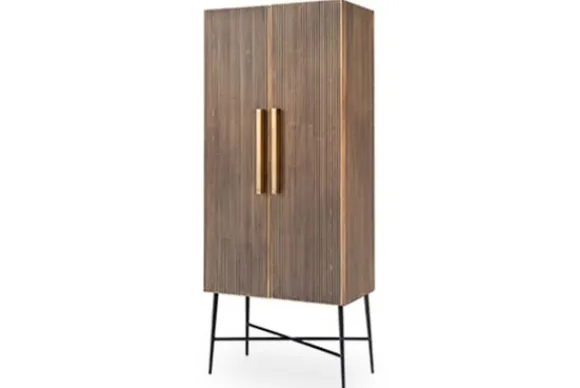 Wandkast Ironville 210589 van het merk Richmond Interiors is een unieke wandkast met een jaren 60 stijl dat in een nieuw jasje is gestoken. De kast heeft een luxe uitstraling door zijn strakke vorm gecombineerd met het ribbelmotief in de anieke messingkleur. De industriële, ijzeren onderstellen zijn zwartgespoten. De kast heeft voldoende opbergmogelijkheden. De kast beschikt over 2 deuren waarachter legplanken zijn geplaatst.