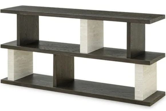 Wandtafel Waldorf 213084 van het merk Richmond Interiors is gemaakt van eiken fineer en steen. Fineer is een dun laagje hout dat op plaatmateriaal wordt aangebracht. Dit wordt geproduceerd door een stam in dunne laagjes te snijden, hierdoor wordt de stam optimaal benut en is er weinig zaagverlies. De tafel is open en heeft hierdoor een ruimtelijke uitstraling. Doordat de tafel voorzien is van meerdere planken heb je genoeg opbergruimte om je mooiste accessoires neer te zetten.