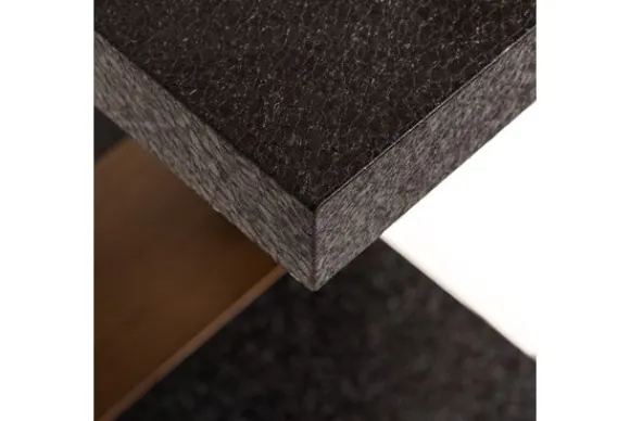 Wandtafel Bazel 213497 van het merk Richmond Interiors is een krachtig statementstuk met een uitgesproken design. De wandtafel combineert een diepzwarte, ruwe steentextuur met een bronzen middenaccent dat als een strakke band over het blad en de poot vouwt. De afgeronde uitsparing in de poot zorgt voor een speels lijnenspel, alsof het licht zelf door de vorm wordt geleid.