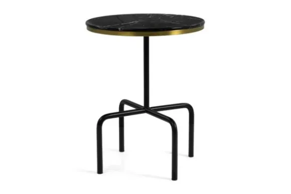 BijzettafelVieve van het merk Aynur Nova is beschikbaar in diverse afmetingen. Deze tafel heeft een diameter van 40 cm. De salontafel krijgt een chique uitstraling door het zwarte marmeren blad met de gouden rand en de metalen poot.