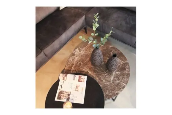 Marmer is een duurzame steensoort en heeft een luxe en stijlvolle uitstraling. Deze tafels zijn hier uitgevoerd met een marmer blad in de kleur emperador brown en poten in de kleur bruin. De productie van marmer verloopt als volgt: uit één grote marmeren plaat worden meerdere bladen gesneden, de patronen (aders) en kleur zijn niet overal hetzelfde. Dit zorgt ervoor dat elk blad een verschillende tekening en kleur heeft, dit maakt elk blad uniek en verschillend.