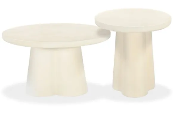 Salontafelset Clubs van het merk Livingfurn is een speelse en sculpturale set met een moderne twist. Vervaardigd uit Beton Ciré op MDF, combineert deze set de robuuste uitstraling van beton met een verfijnde, zachte afwerking in een lichte beige tint.