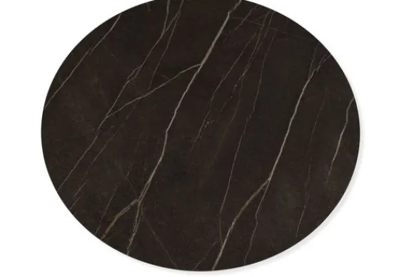 Het tafelblad heeft een ronde vorm en is gemaakt van hpl. De tafel heeft een blad in de kleur Arpa 3446 Pulpis Dark.