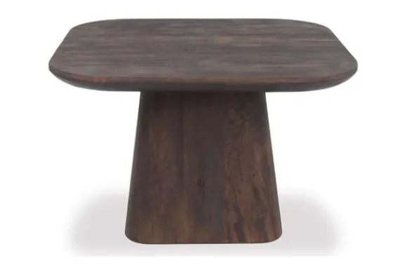 Salontafel Aron brown 95765 van het merk Eleonora is gemaakt van mangohout met een geverfde afwerking. Het blad loopt taps af naar beneden en de poot is kegelvormig. Mangohout kun je herkennen aan de vele kleurschakeringen en ongelijkheden in het oppervlakte van het hout, waardoor geen enkel meubelstuk hetzelfde is. De kleuren in mangohout kunnen variëren van lichte- tot donkere tonen. Mangohout is een duurzame houtsoort.