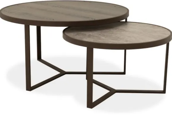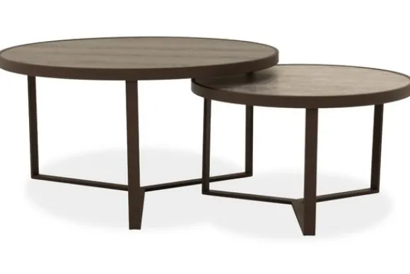 Salontafelset Merville van het merk Ideco is een stijlvol duo en bestaat uit een tafel van Ø80 x H42 cm en een kleinere tafel van Ø60 x H35 cm. De ronde bladen zorgen voor een zachte vorm, terwijl het metalen onderstel juist strak en krachtig oogt.