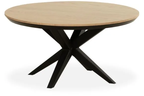 Salontafel Levin van het merk Lamulux, hier afgebeeld in de kleur fresh oak, is beschikbaar in diverse vormen en kleuren. De tafel is voorzien van een zwart metalen onderstel. De tafel heeft een ronde vorm met een tapse rand.