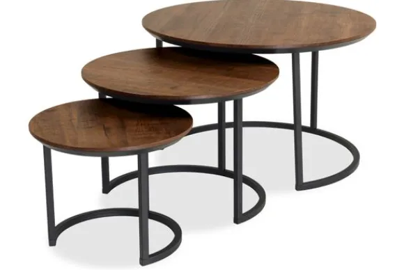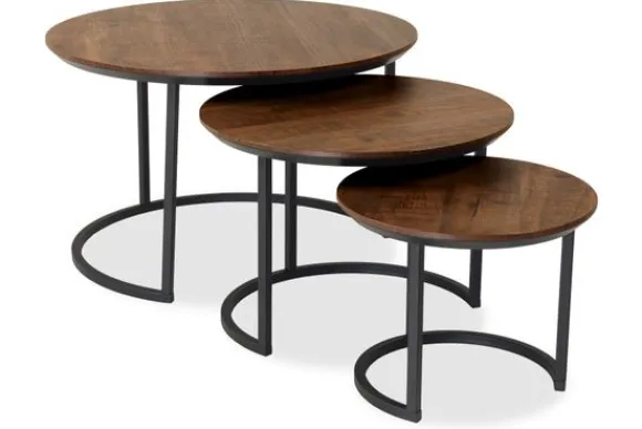 Salontafelset Dover van het merk Lamulux is verkrijgbaar in diverse kleuren. Deze set bestaat uit drie tafels met de volgende afmetingen: H33 x B45 x B45 cm, H40 x B60 x D60, H47 x B80 x D80 cm.