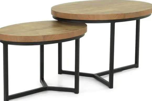 De grotere set bestaat uit twee ovale tafels van B86 x D67 x H50 cm en B71 x D52 x H43 cm.