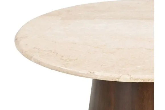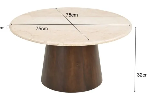 Salontafel Bottecino van het merk Livingfurn heeft een rond blad van marmer en een stevige poot van mangohout. Het marmer geeft iedere tafel een eigen uitstraling dankzij de natuurlijke aders en kleurnuances. In combinatie met het warme hout zorgt dit voor een luxe en tijdloos geheel.
