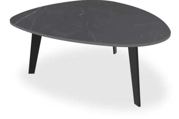 Salontafel Tove van het merk Maison Royale is verkrijgbaar in diverse kleuren en materialen. Daarnaast is de salontafel ook verkrijgbaar in vier verschillende afmetingen. Zo is er voor ieder interieur een bijpassende tafel te vinden. De driehoekige vorm en minimalistische zwarte stalen poten geven de tafel een modern uiterlijk. Deze tafel heeft een tafelblad gemaakt van zwart marmer met kenmerkende witte aders. Marmer is gemakkelijk schoon te houden, duurzaam en gaat je leven lang mee. De onderkant van de tafel is gemaakt van keramiek. Tove is ook als bijzettafel verkrijgbaar.