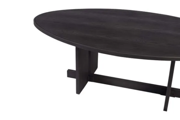 Salontafel Ohara Black veneer 706834 van het merk PTMD is een elegante, zwart houten tafel. De ovale tafel is voorzien van een houten tafelblad dat wordt gedragen door een stevig ijzeren onderstel. Uitgevoerd in de kleur zwart past deze gezellige koffietafel zowel bij een moderne als een landelijke interieurstijl.