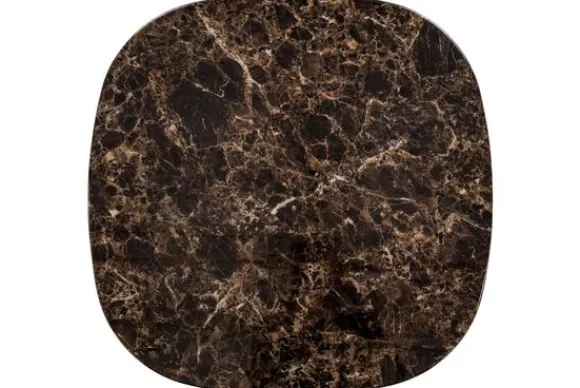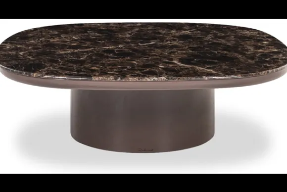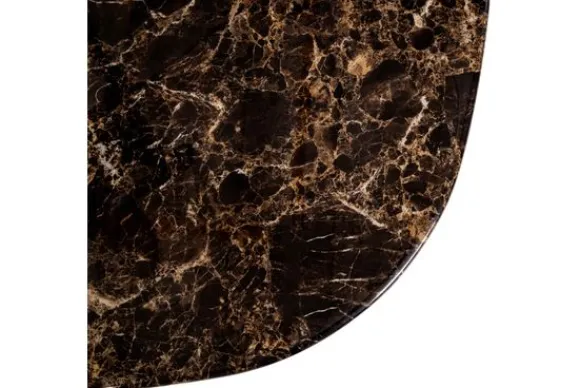 Salontafel Almundi 214307 van het merk Richmond Interiors is een elegante tafel met afgeronde hoeken. Het keramieken blad toont een diep marmerpatroon met rijke donkere tinten en subtiele aders.