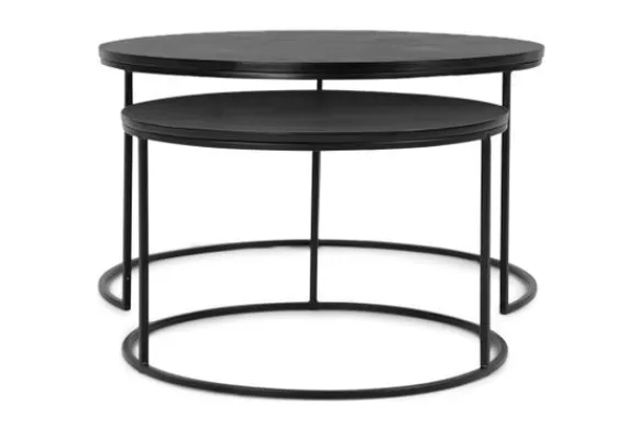 Salontafelset Bolder 210499 van het merk Richmond Interiors heeft een zwart ijzeren onderstel met een aluminium blad. Dit zijn erg sterke materialen waardoor de tafel lang mee zou gaan. De tafel heeft zijn moderne en strakke uitstraling te danken aan het dunne frame en volledige zwarte look. De grotere tafel heeft een inkeping in de poot waardoor de kleinere eronder geschoven kan worden. Dit zorgt er ook voor dat de tafels makkelijk te verschuiven zijn, zo kan je er bijvoorbeeld een gebruiken als bijzettafel.