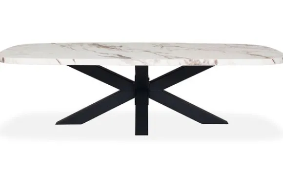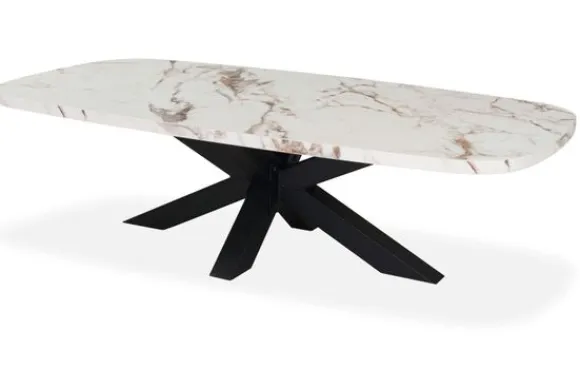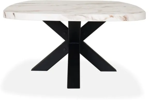 Salontafel Gozo van het merk Tablium is gemaakt van melamine. Melamine is kras- slijt- en stootvast en eenvoudig te onderhouden. Deze salontafel heeft een zwart metalen spinpoot en heeft de kleur Calacatta White, wat de tafel een moderne look geeft.
