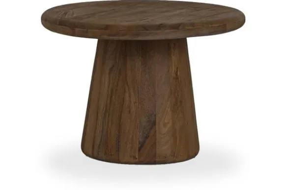 De salontafel Asti heeft een stevige poot die het blad stabiel draagt. Het bruine mangohout heeft een duidelijke houtstructuur die zorgt voor een rustig beeld in de kamer.